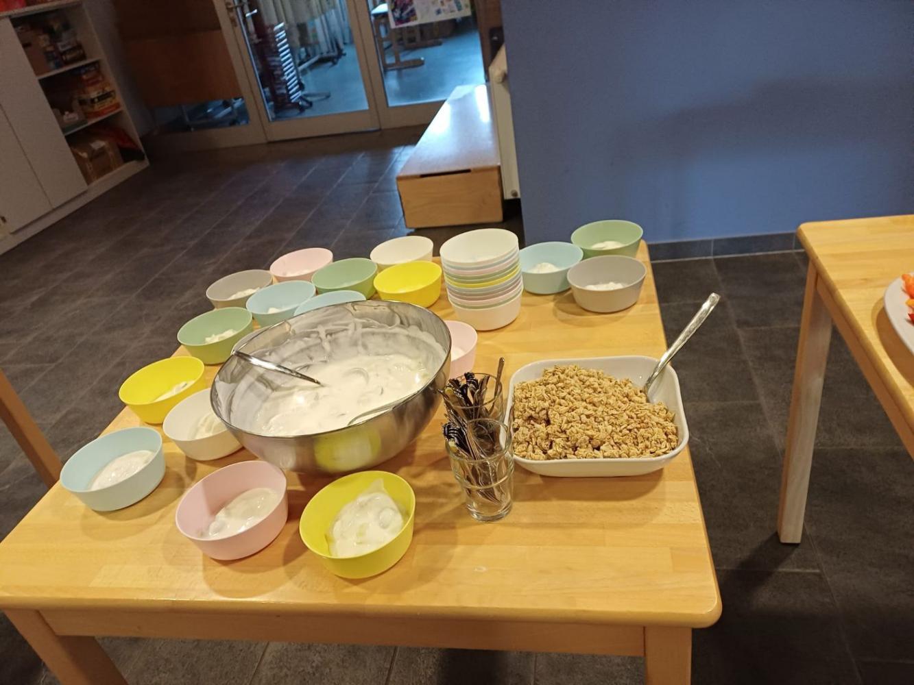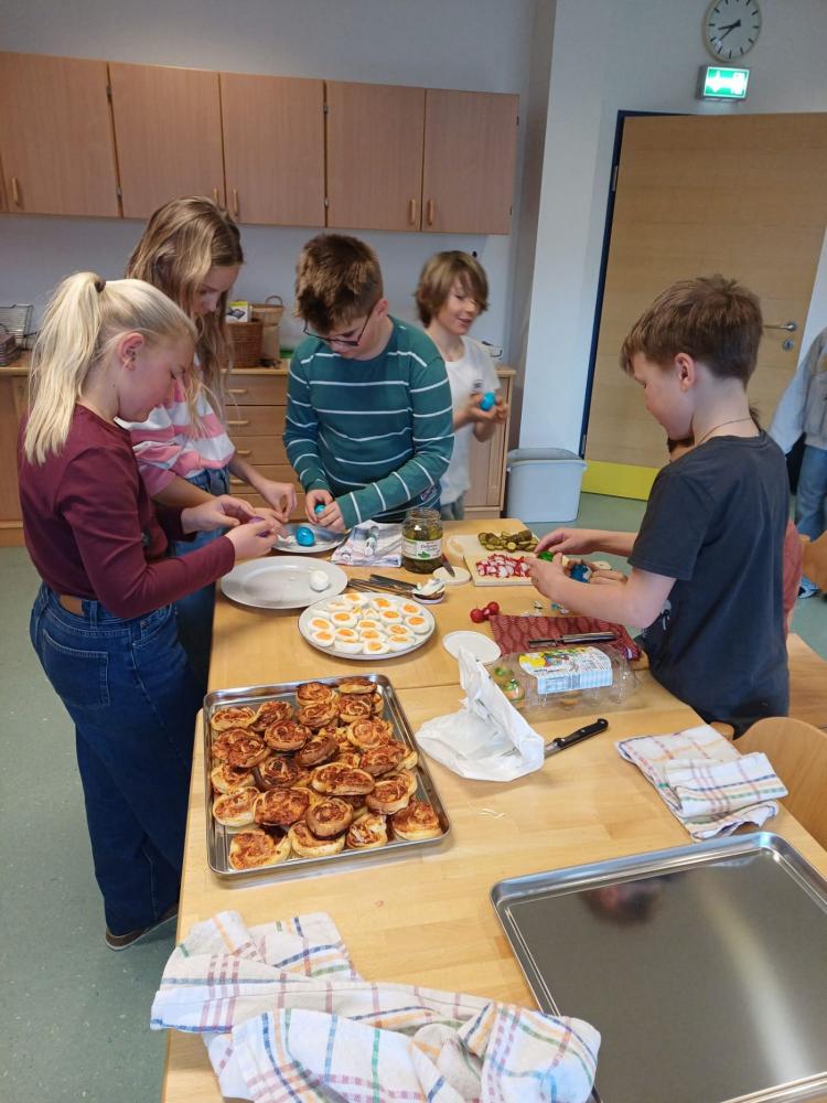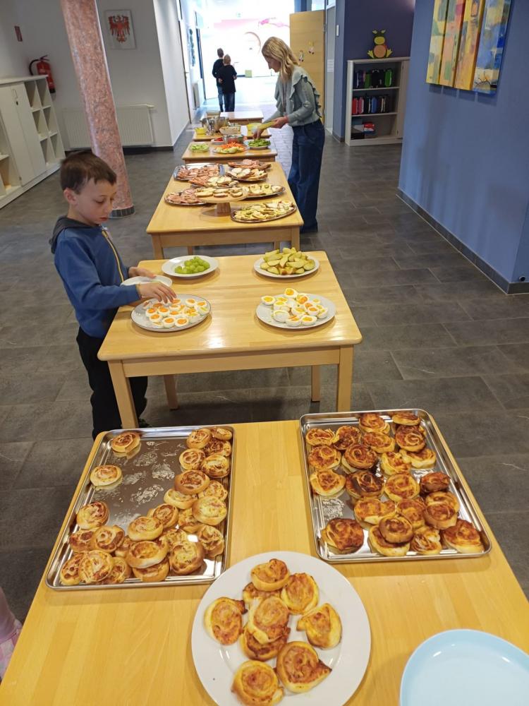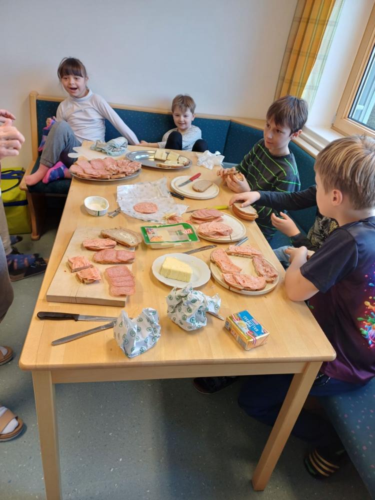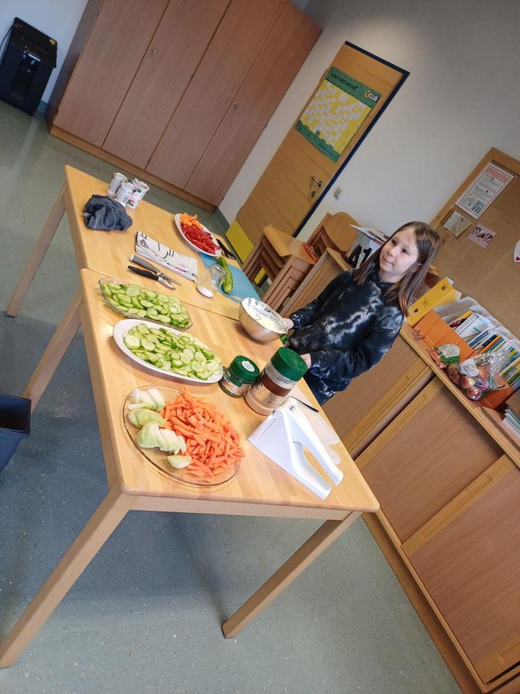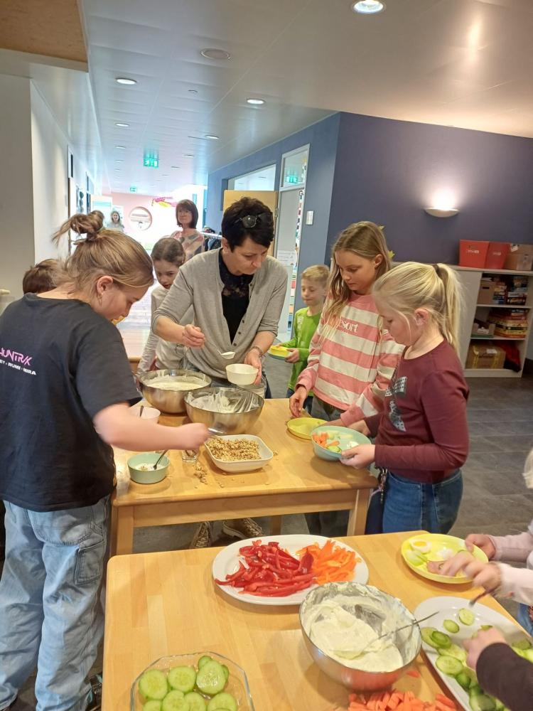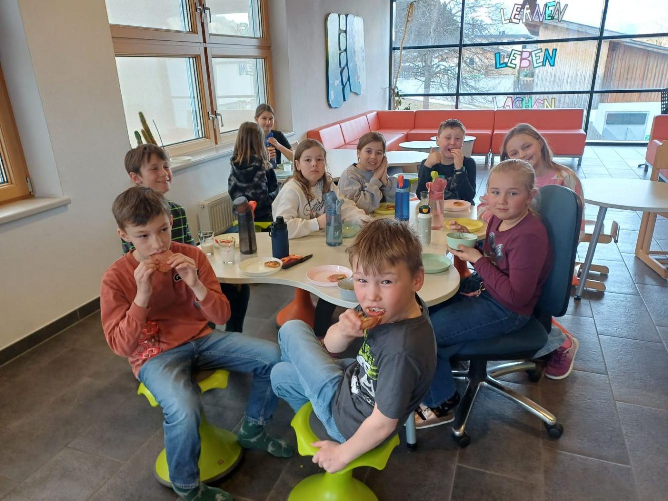 Am Dienstag, 10.03.2026 starteten wir mit unserer ersten gesunden Schuljause. Die 4a-Klasse unter der Anleitung von Susanne Achrainer und Katharina Hörbiger bereiteten mit Hilfe ihrer Schüler und der Schulassistentinnen leckere und gesunde Köstlichkeiten zu. Sowohl das Kochen als auch das Essen machte allen viel Spaß und wir freuen uns schon auf viele weitere monatliche gesunde Jausen.