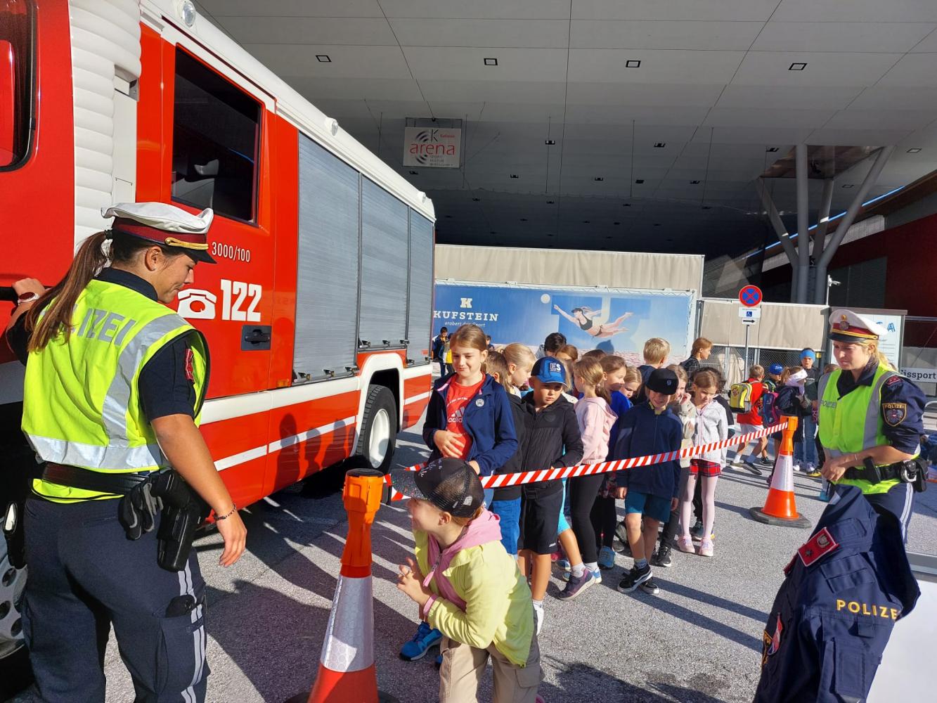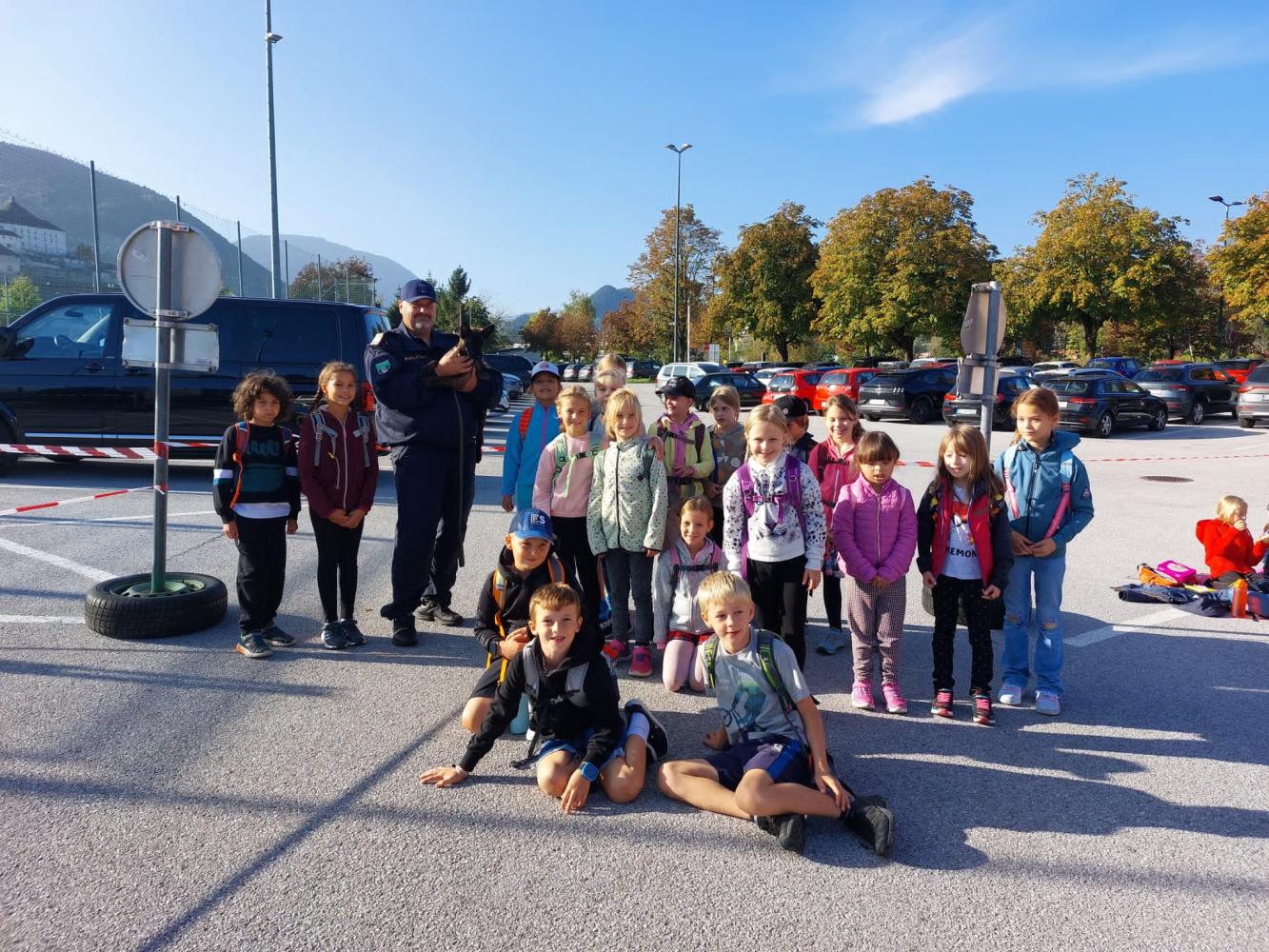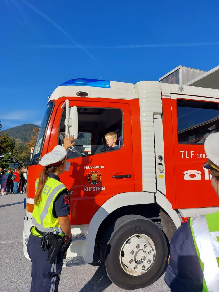 Am 3.Oktober 2023 fuhr unsere 3.Klasse gemeinsam mit ca. 1200 Schülern aus dem Bezirk Kufstein in unsere Bezirkshauptstadt zur Veranstaltung „133- Kinderpolizei“. Wir konnten uns bei verschiedenen Stationen wieder bewusst machen, wie wichtig es ist, auch auf dem Gehsteig gut aufzupassen (Toter Winkel,…). Weiters wurde uns ein Polizeihund vorgestellt und ein netter Polizist erzählte uns von seinem Alltag, insbesondere bei der Kontrolle von LKWs. Abgerundet wurde der Vormittag mit einem Konzert der Gruppe "Bluatschink". Am Schluss brachte uns Gerhard mit dem Bus wieder sicher zurück in die Wildschönau. Es war eine tolle Abwechslung zum regulären Schulalltag.