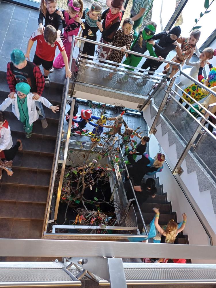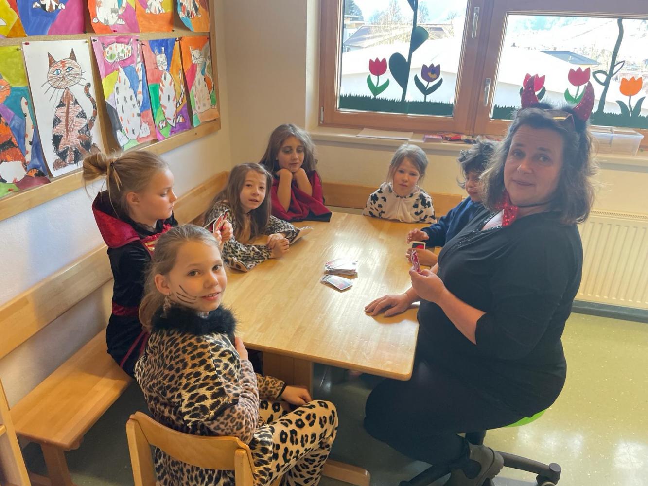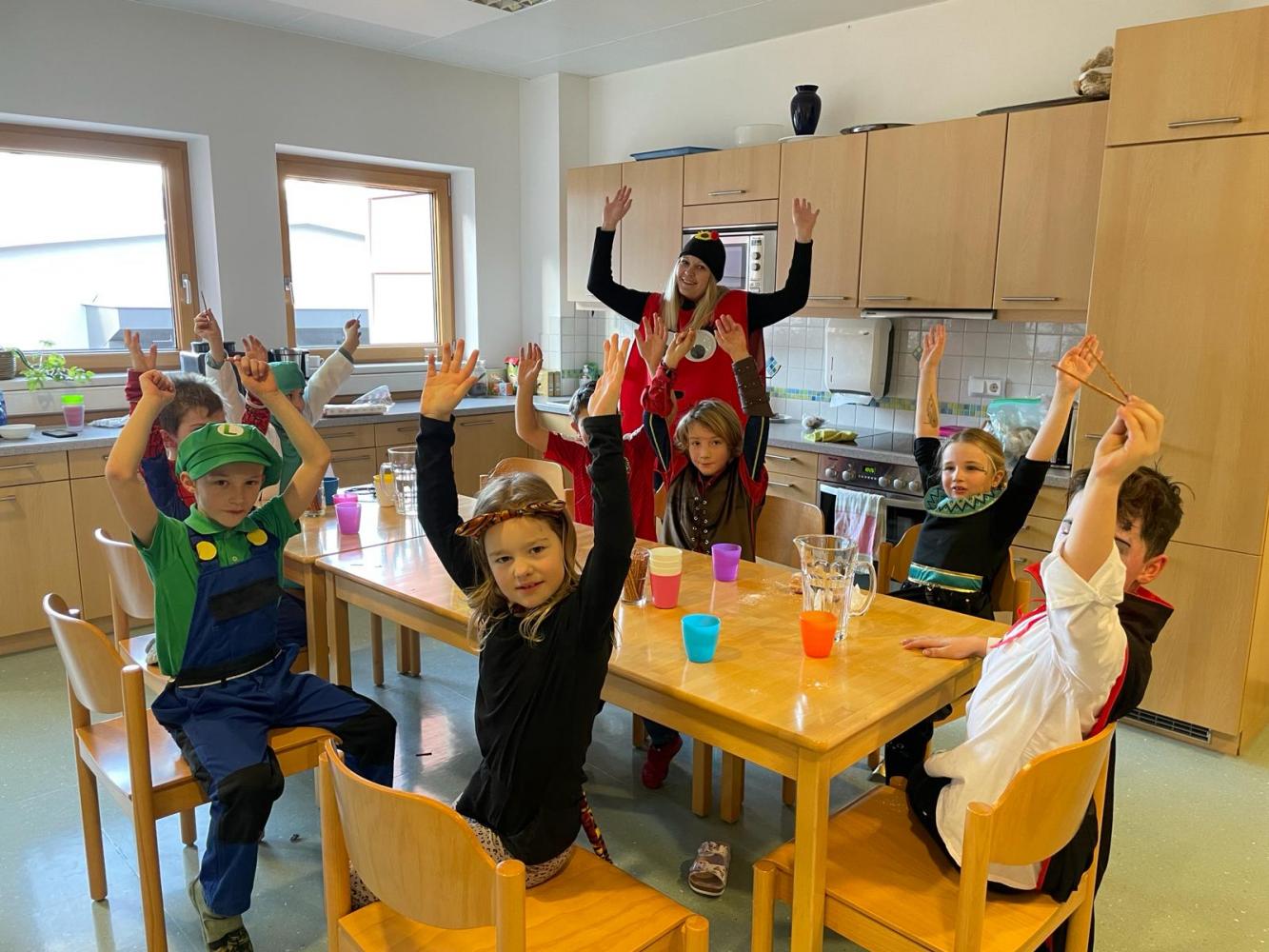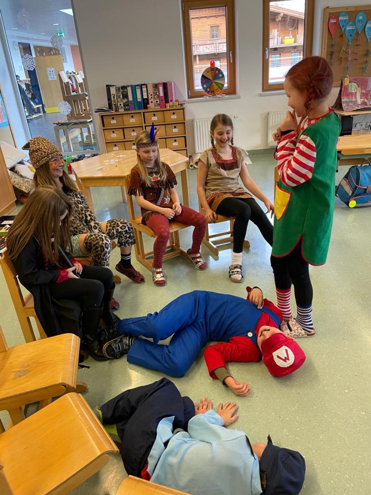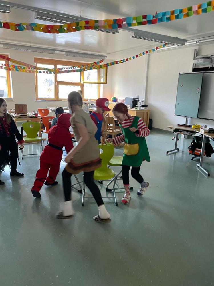 Im ganzen Schulhaus wurde im Anschluss gefeiert, getanzt und gespielt. Gejausnet wurden ausnahmsweise vor allem Süßigkeiten und Faschingskrapfen.