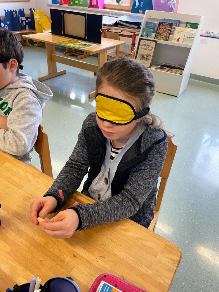 Ein besonderes Highlight war der Abschluss des Workshops: Beim blinden Verkosten verschiedener Lebensmittel waren Mut und gute Sinne gefragt. Die Kinder hatten viel Freude beim Erraten.
