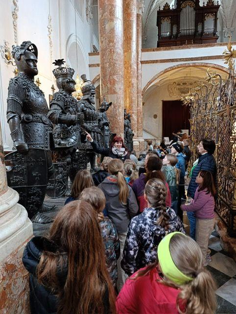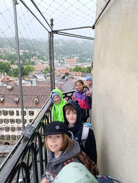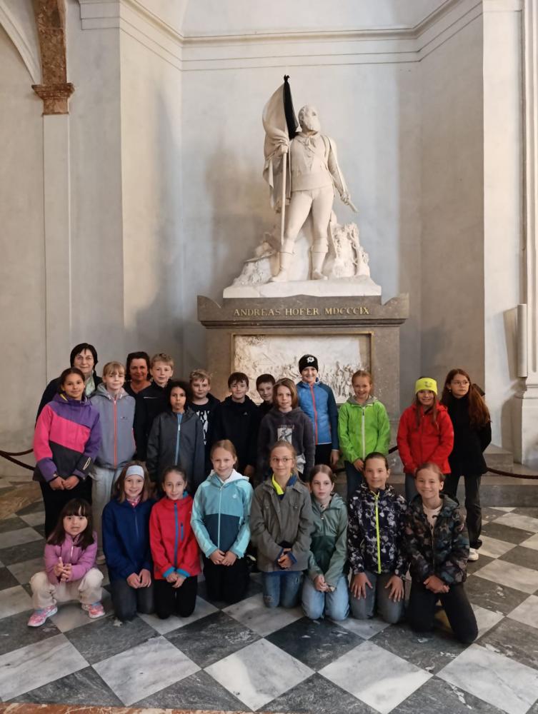 Wir hatten eine tolle Führung durch die Hofkirche, wo wir unsere ehemalige Mitschülerin Soraya trafen. Dann gingen wir weiter zum Goldenen Dachl. Nach einer gefühlten Ewigkeit war endlich Pause. Dann stiegen wir auf den Stadtturm hinauf, und danach durften wir 30 Minuten alleine herumschlendern. Nun bummelten wir zum Bus, der uns zum Bergisel fuhr. Dort angekommen sahen wir die Andreas- Hofer- Statue.