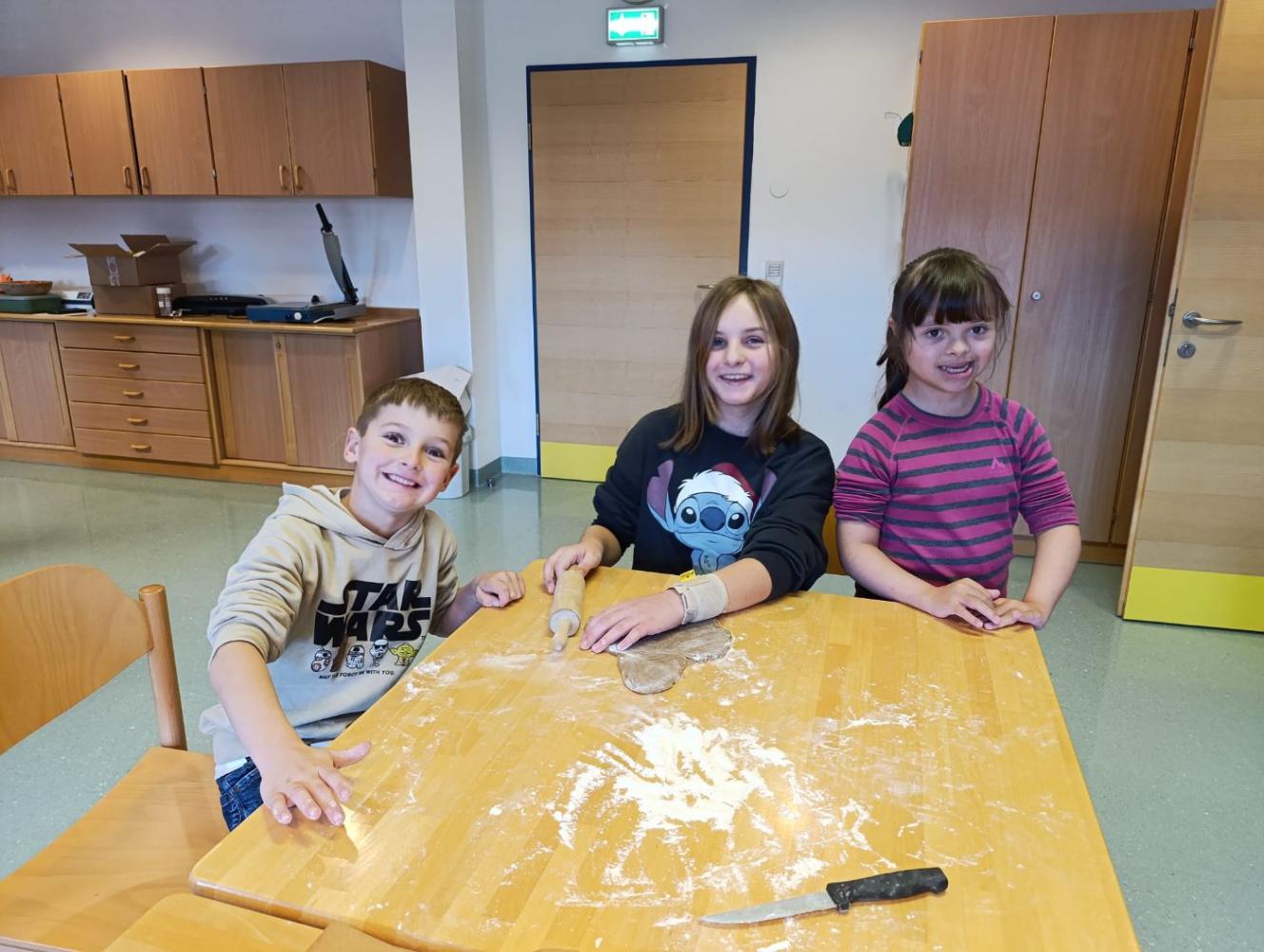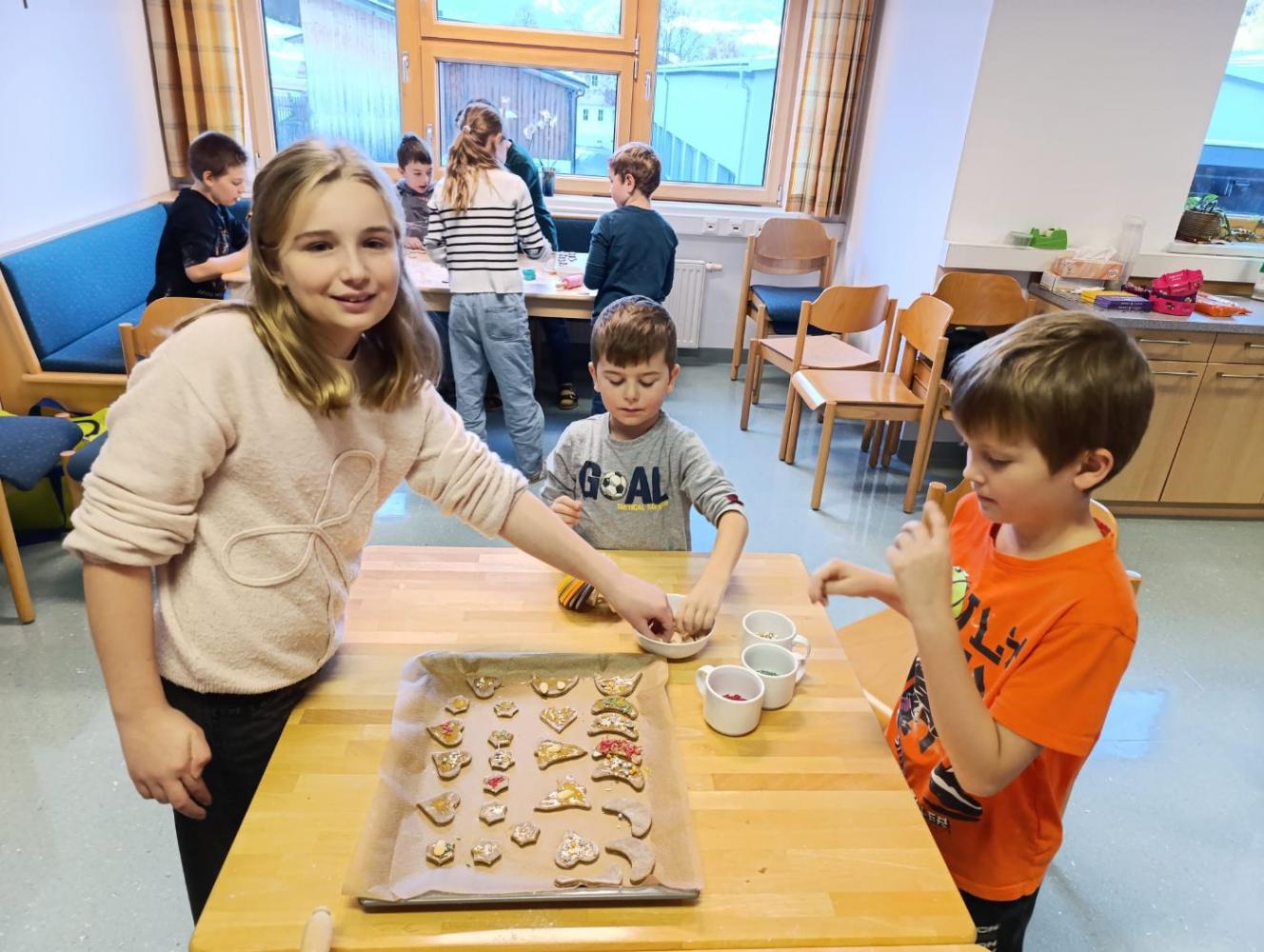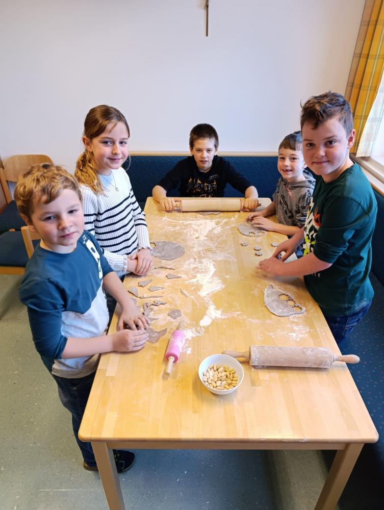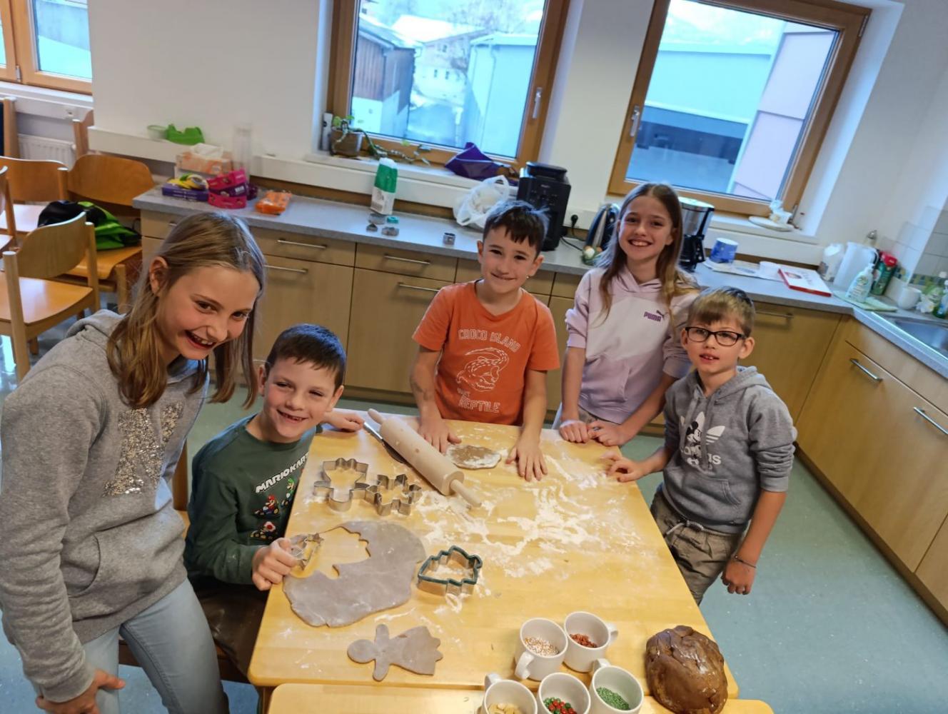 Die Erstklässler haben heute ihre Schutzengel – die Kinder der vierten Schulstufe – kennengelernt. Das gemeinsame Kennenlernen fand bei einem gemütlichen Keksebacken statt. Es war eine wirklich nette und herzliche erste Begegnung zwischen den großen und kleinen Schülern.