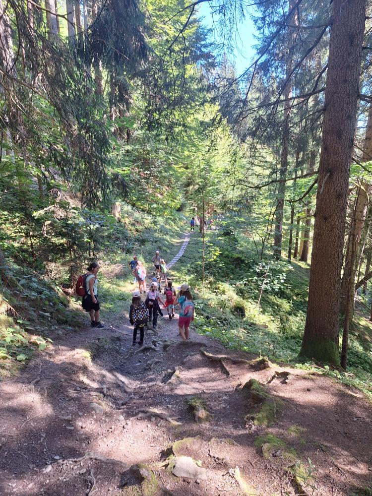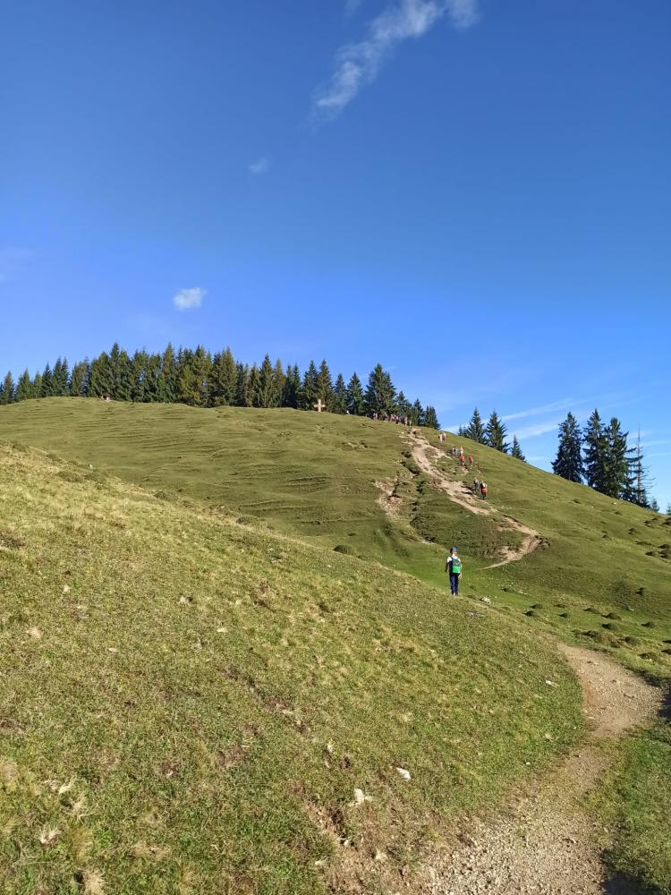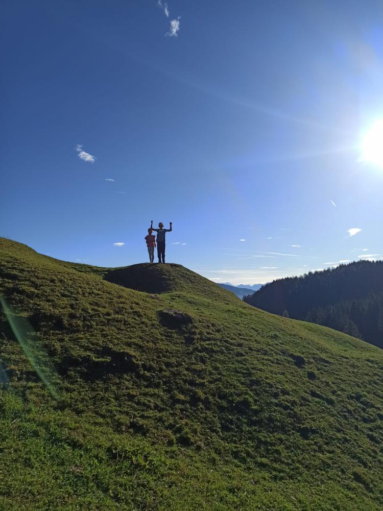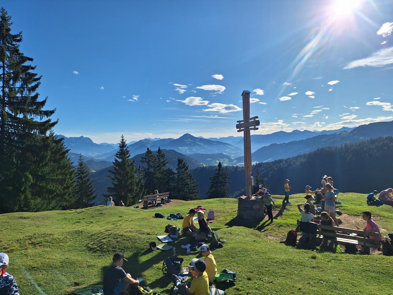 Am 21. September fuhren alle Kinder und die Lehrerinnen unserer Schule mit der Bummelbahn zum Borstadl. Von dort wanderten wir gemütlich zum Kragenjoch. Neben dem Gipfelkreuz verspeisten wir bei strahlendem Sonnenschein unsere köstliche Jause. Auf dem Rückweg kehrten wir bei der Achentalalm ein. Nach einer kurzen Stärkung spazierten wir zurück zum Borstadl, wo Bartl schon auf uns wartete. Unsere sportlichsten Schüler marschierten sogar über den Weg der Lieder zurück zur Schule. Das war ein toller Tag!